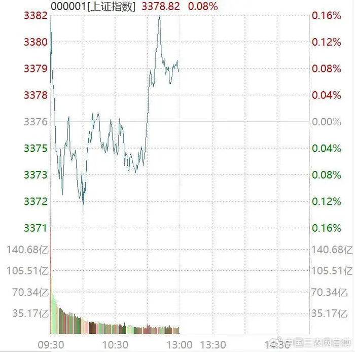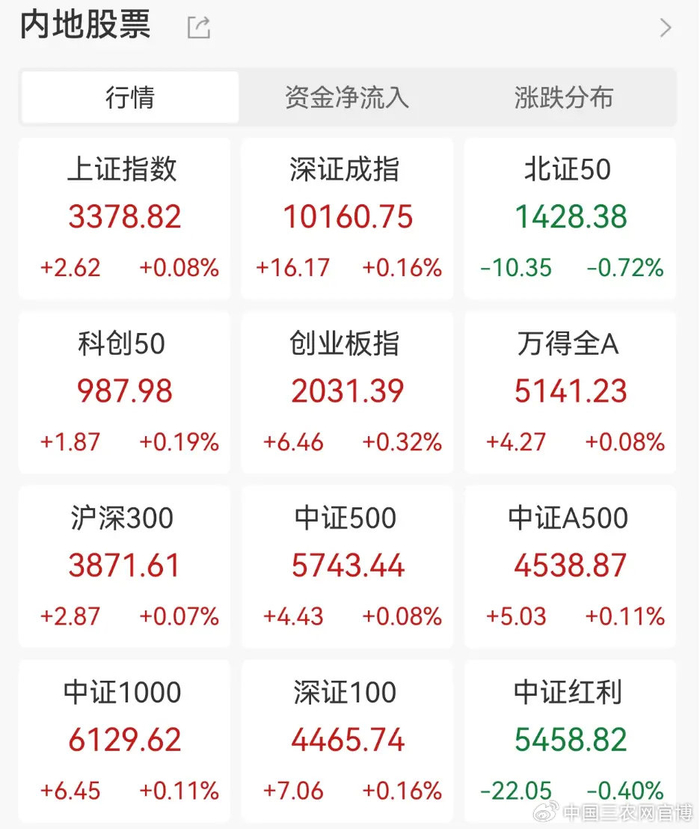 6月5日上午,A股市场盘初小幅跳水,窄幅调整后翻红回升。截至午间收盘,上证指数涨0.08%,深证成指涨0.16%,创业板指涨0.32%,北证50指数跌0.72%。