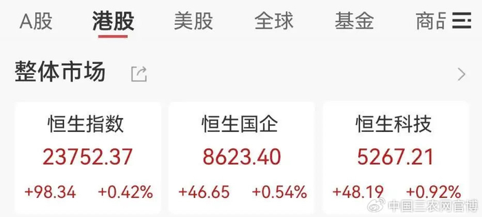 港股市场上午保持景气值,午前涨幅有所回落。截至午间收盘,恒生指数涨0.42%,恒生科技指数涨0.92%,恒生国企指数涨0.54%。人气股方面,阿里巴巴、美团、中芯国际涨超2%,老铺黄金跌超8%,泡泡玛特跌超2%。