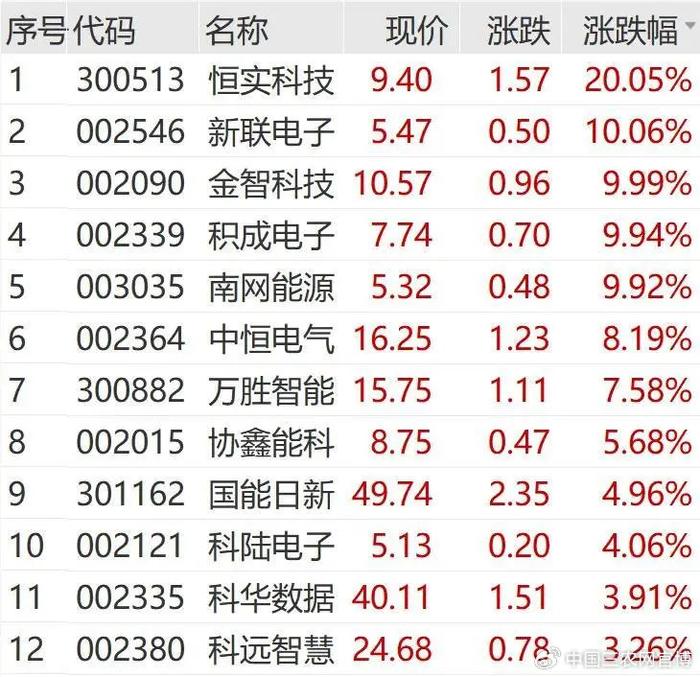 6月5日上午,虚拟电厂概念持续活跃。恒实科技开盘后迅速封住20cm涨停,新联电子、金智科技、积成电子、南网能源等多股涨停。