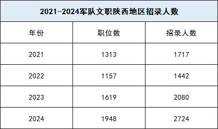 2024年军队文职共计招录33382人,其中,陕西地区招录2724人。大家一定要抓住机会!