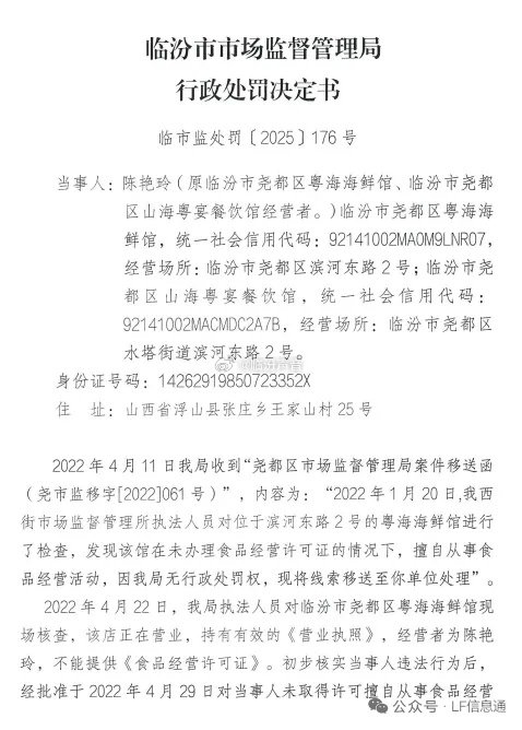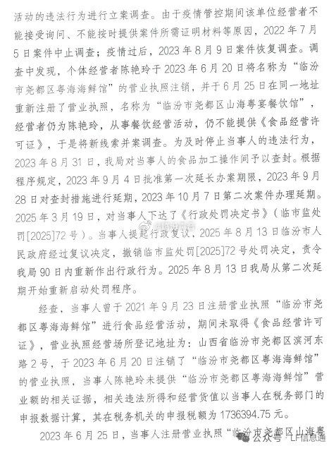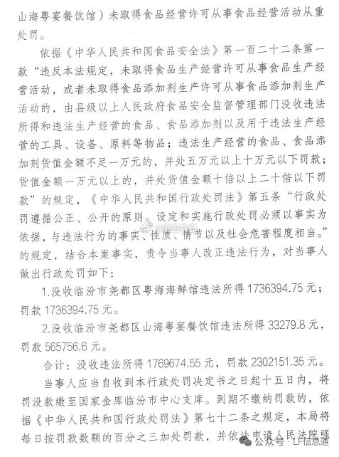 惊爆!临汾一海鲜餐馆被处罚,没收400多万…