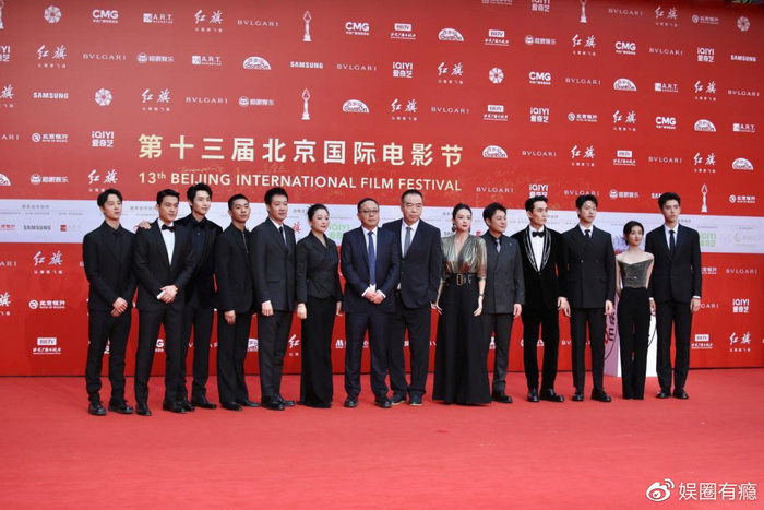 同样站中间的还有陈凯歌的妻子陈红,没错她就是本片的制片人,而陈飞宇也是本片的男三号,这样子“拖家带口”拍一部电影的情况在影视圈中并不少见。