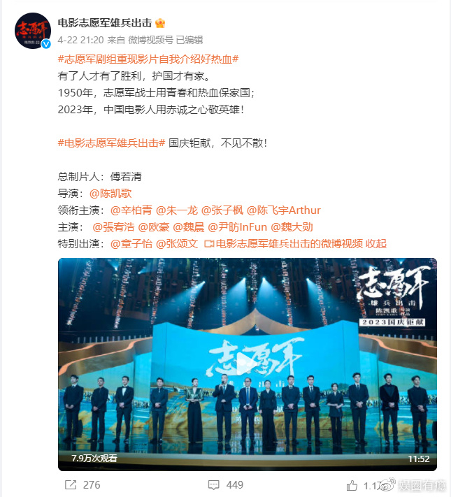 那是不是可以理解成:陈凯歌带着这一群演员在主动给自己制造热度,目的自然是为了《志愿军》的热度。