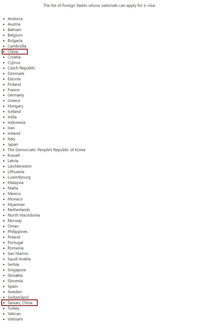 根据俄罗斯外交部消息,莫斯科时间8月1日10时起,包括中国和中国台湾在内的55个国家和地区的公民将可以申请电子签证进入俄罗斯。