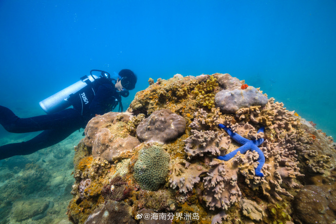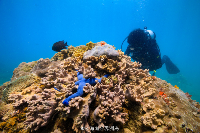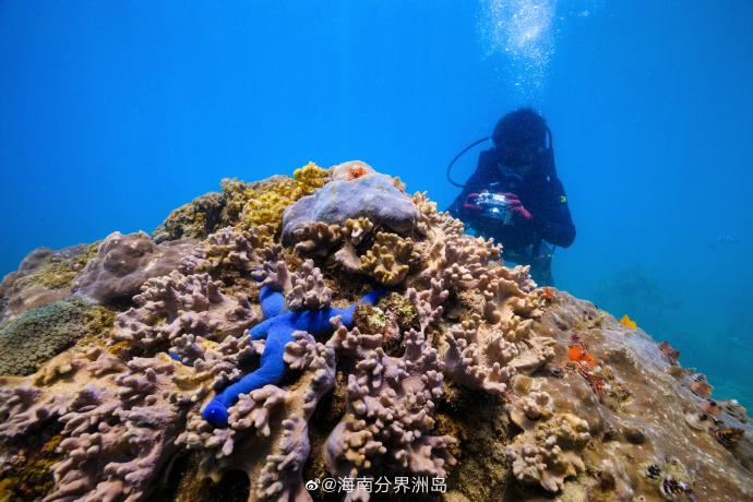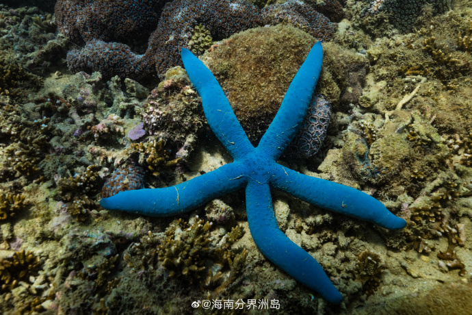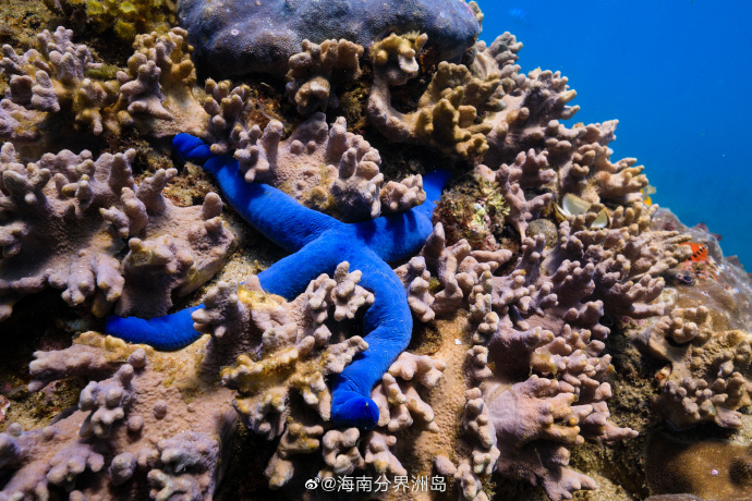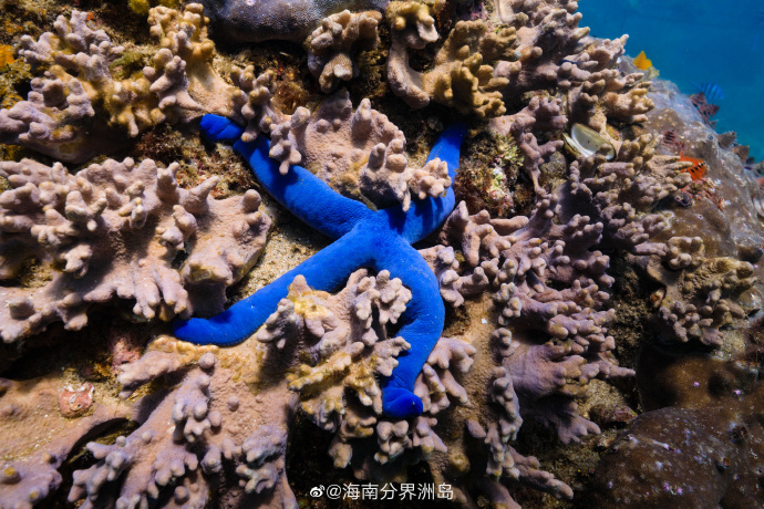 蓝海星,海星的一种,体表为深蓝色,型如树枝,生命力极强。 ( via. @海南分界洲岛)