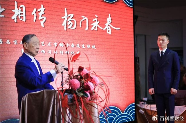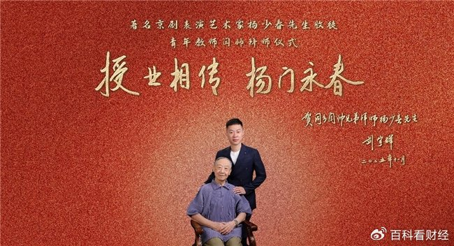 2025年11月9日,著名京剧表演艺术家、教育家杨少春先生收徒优秀青年演员闫帅拜师仪式在王府井峨嵋酒家隆重举行。北京京剧院党委书记朱甲先生、院长秦艳女士、副院长孙鹏先生以及副院长高云霄先生代表剧院向师徒表示祝贺;北京戏曲艺术职业学院院长吴蕾女士、副院长许翠女士以及京剧系主任李青先生代表北戏向师徒表示祝贺,参加仪式的各界来宾众多,京剧界著名表演艺术家叶蓬、叶金援、张四全、李卜春等,以及各界重磅领导嘉宾全国新闻工作者协会原党组书记翟惠生、著名编剧及戏剧理论评论家 原中国戏剧家协会秘书长崔伟、北京首都国际机场临空经济区管委会副主任王鑫、原北京京剧院院长王玉珍、第十四届全国政协委员原北京京剧院院长刘侗、原中国戏曲学院副院长赵景勃、中国戏曲学院教授张关正、中国戏曲学院教授江长春、原北京戏校副校长李连仲、原北方昆曲剧院副院长曹颖、中国戏曲学院教授舒桐、中国戏曲学院教授年金鹏等领导齐聚一堂,近百人共同祝贺杨少春、闫帅师徒。