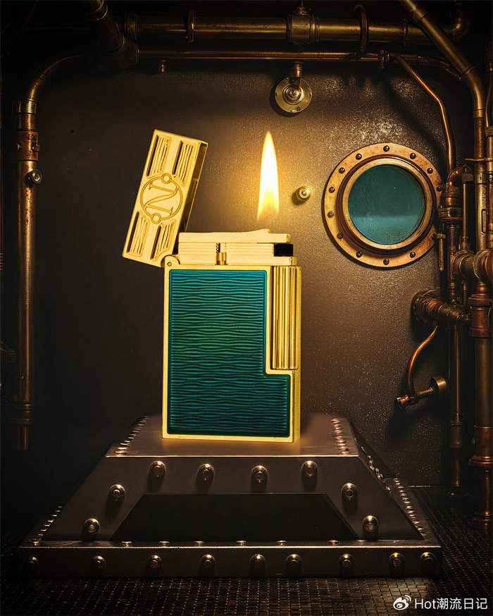 显赫版Le Grand格兰德打火机以闪亮的蓝色漆面为引,1N黄金饰面勾勒航海勋章,如坠入深海的宝藏般耀目璀璨。机盖之上,玑镂工艺精密雕琢的潜艇舷窗与“鹦鹉螺号Nautilus” N字标识相呼应,引领鉴赏家深入万米深海,解锁探险序章。延续法国都彭经典的铜轮点火装置,并搭载可调节双火焰系统,堪称技术与艺术的完美融合。柔和火苗可均匀地预热雪茄,亦能化作火炬式烈焰快速点燃雪茄。而“鹦鹉螺号”潜艇模型摆件与典藏礼盒,让日常单品更具仪式,打造属于收藏家的启航之礼。