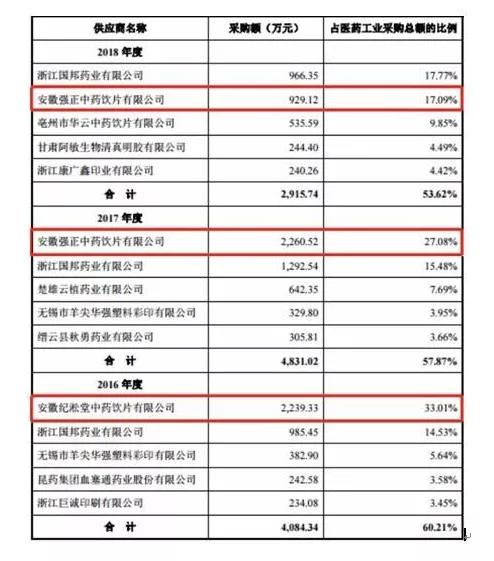 招股书披露,报告期内安徽强正一直是其医药工业的前五大供应商之一。