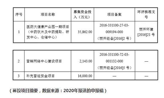 最新招股书显示,维康药业拟募集资金54005万元,用于医药大健康产业园一期项目(中药饮片及中药提取、研发中心、仓储中心)、营销网络中心建设及补充营运资金项目。