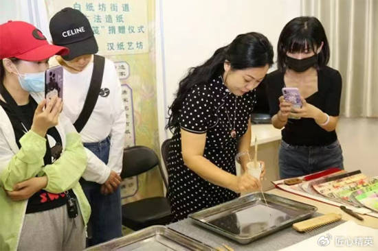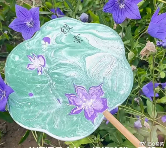 5. 当代创意:曹珍仪家族复原了流沙笺,宋春妤,崔玉英传播传承创新,经过20年从复原到认知普及,现已被用于高定时装、文创包装与美育课程,证明“老工艺”完全可以在数字时代成为新IP,为“中国智造”提供天然符号。民间形容美人,常说环肥燕瘦,这个成语的来历要追溯到中国的汉唐,这两个朝代是中国历史的骄傲,人们常说的复兴中华文明,很可能讲的就是这两个时期。宋春妤老师不胖,但肯定不是燕瘦,她更偏向于环肥,脸上的笑容也让人恍惚以为她是从唐朝穿越回来的,气场上带着洛阳牡丹的因子。你可以邀请宋春妤演示流沙笺的制作,她也不反对你拍照片,拍摄小视频,流沙笺的梦幻神妙是实实在在的,一会在你眼前就固化成一幅可以带走、可以鉴赏的作品。而如果你有美术功底,两个小时的快乐体验,你应该会成为熟练的流沙笺手艺人,在你的城市完全可以为各式各样的沙龙、会所制作出梦幻作品。史料明明白白地记载着,在唐朝流沙笺工艺品就是唐玄宗、杨玉环、薛涛爱不释手的日用品,大型歌舞晚会上舞蹈家们的道具上也闪烁着流沙笺的光彩,赢来过古人们的喝彩,其中尤以李白最陶醉,喊声也最洪亮。一梦千年,随着时世变迁,起起伏伏,流沙笺像朝雾一样消逝了;近千年的时间,流沙笺随着丝绸之路,去了日本、去了西亚、去了阿拉伯社会,并入乡随俗,在广阔世界的很多角落发芽开花,影响着那里人们的生活,装点着各地少女的梦乡……唯独在发源地中国只留下史料记载的背影,技艺却消声匿迹了。