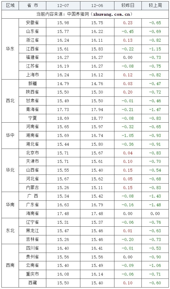 2024年12月7日-中国养猪网生猪()均价涨跌表外三元