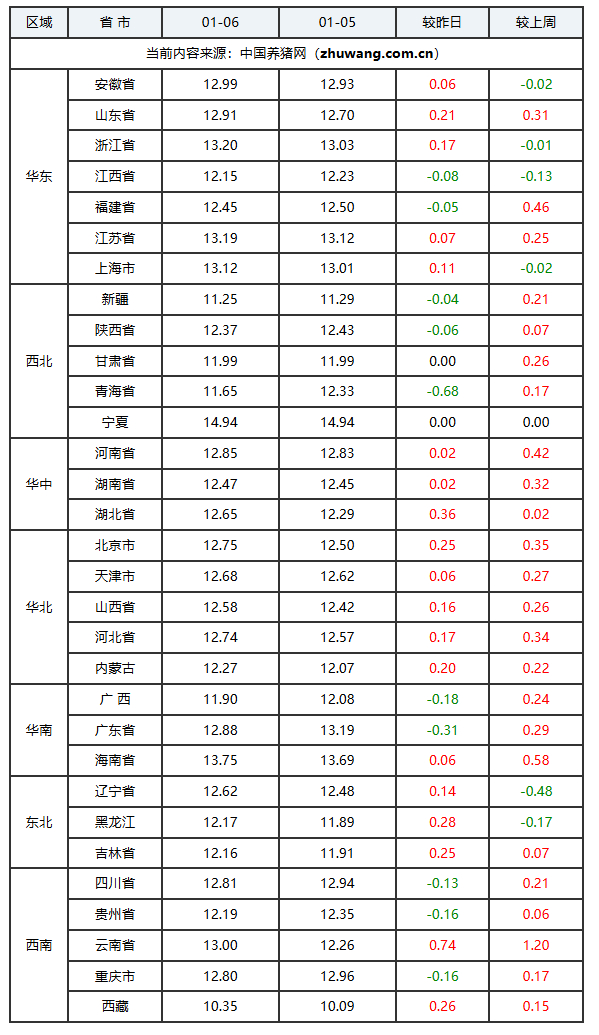 2026年01月06日-中国养猪网生猪(外三元)均价涨跌表