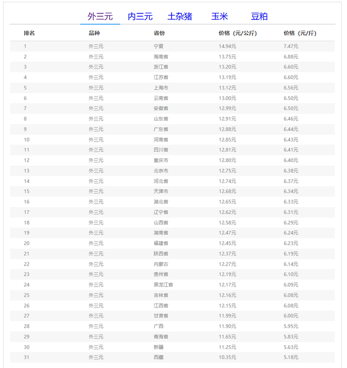 (备注:本文生猪价格及猪价特指活猪价格,并非是消费市场的猪肉价格,外三元、内三元、土杂猪则为生猪品种。)