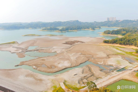嘉义仁义潭水库蓄水下跌,沙洲、小岛浮现。(图片来源:台湾中时新闻网)报道称,据台气象局统计,南部地区去年6月迄今,降雨量出现比百年大旱同期降雨量更少的情况。王美花22日主持旱灾灾害应变中心第二次工作会议,并拍板即日起新竹、苗栗、台中包含北彰化,水情灯号由正常的蓝灯调整为代表水情提醒的绿灯,且实施“类黄灯”措施,也就是在夜间23时到次日早上5时实施减压供水。