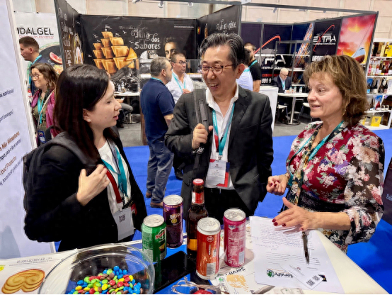 图为澳门企业代表与当地参展商洽谈交流。(澳门招商投资促进局供图)“第4届葡萄牙出口食品展”4月28日至30日在葡萄牙里斯本举行,是当地最大规模的出口食品展。今年有约400家葡萄牙食品企业参展,展示农产品、食品及酒类等产品,吸引逾1100家国际采购商参与。