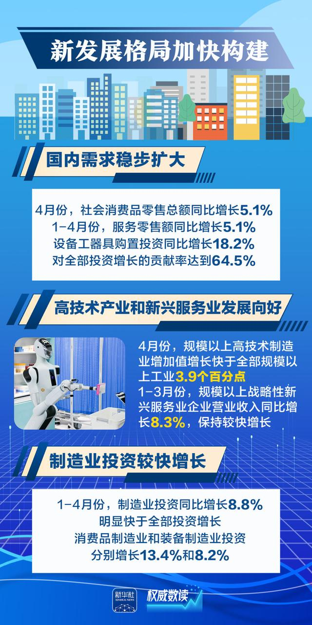 4月份经济数据陆续出炉,中国经济顶住压力稳定增长,延续向新向好发展态势。