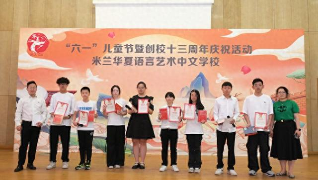 人民网罗马6月3日电(记者谢亚宏)当地时间6月1日,米兰华夏语言艺术中文学校在米兰省府礼堂举行庆祝活动,庆祝“六一”国际儿童节暨创校十三周年。中国驻米兰总领馆领事任武、米兰市第七区副主席西乌尔巴、ITIS Ettore Conti 高中副校长科斯坦蒂诺、意大利中文学校联合总会会长、米兰华侨中文学校校长陈小微、米兰华侨华人工商会会长黄国权,以及米兰部分侨团代表、师生和学生家长近700人出席活动。