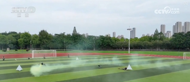 在信息支援部队工程大学的校园里,无人机在天上飞、机器狗在地上跑,配合得非常默契。学员们先是派出侦察无人机悄悄锁定“敌”方的位置和动态,情报一到,攻击无人机立马挂弹俯冲,精准到位。这波操作,有点儿像在看未来战争大片。