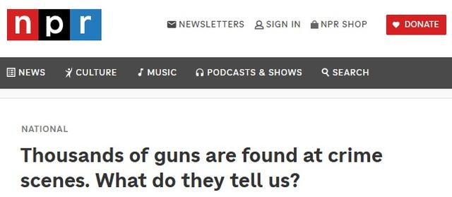 NPR网站报道截图报告还发现,尽管美国有超2万家枪械制造商,但犯罪用枪高度集中于4家巨头,且它们享有豁免权,即便其所生产的枪支被用于犯罪,也无需承担民事责任。美国烟酒枪炮及爆炸物管理局的数据还表明,一半犯罪用枪“购枪到犯罪时间”少于3年,凸显对枪支经销商进行强有力联邦检查的必要性,但该机构明年将面临大规模预算削减。