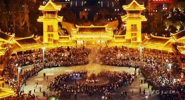 夜幕降临,小镇的金门广场热闹起来,各地的游客来到广场参加篝火晚会。