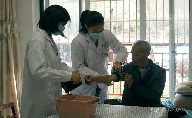 中午时分,在家门口的社区文化长廊,杨帅的岳父李文勇和老伙伴们正在打牌聊天。打完牌后回到家,两位家庭医生还上门为老人测血压、查血糖,耐心叮嘱健康注意事项。
