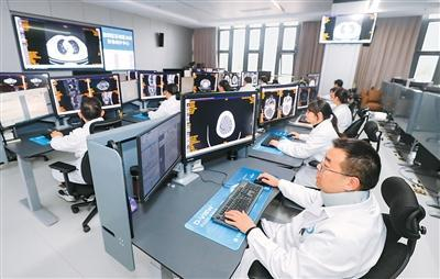 图为10月30日,江苏省淮安市第五人民医院医生在影像阅片中心读片出报告。近年来,淮安市淮阴区将市区两级医疗优质资源下沉18个乡镇的189个村卫生室,实现“基层检查、上级诊断”。通过双向转诊与远程会诊,减少患者重复检查,降低就诊费用,今年以来完成远程诊断报告审核2.7万余份。赵启瑞摄(人民视觉)