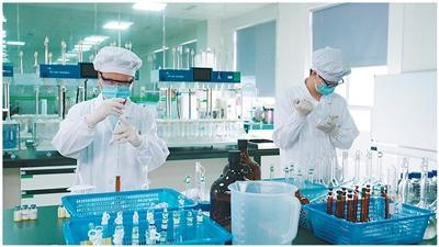 海南先声药业实验室,工作人员在做实验。