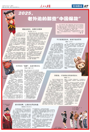 国产动漫电影《哪吒之魔童闹海》登顶全球动画电影票房榜,潮玩Labubu在世界多地掀起抢购潮,歌曲《大展鸿图》引发海量外国观众模仿,网络文学《诡秘之主》受海外网友追捧,电视剧《藏海传》在190个国家和地区播出……2025年,中国文化正以多元姿态跨越山海,“圈粉”全球。