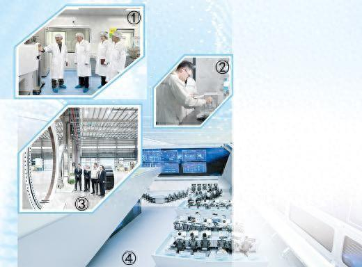 图①:在合源生物科技(天津)有限公司实验室,技术人员(左一)向北京银行天津分行工作人员详细讲解细胞检验技术的流程工艺。井永馨摄