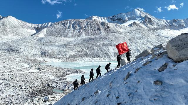 每天清晨6点,3人准时起床,在严重缺氧的环境中完成内务整理和巡逻准备。冬季室外温度低至零下20度以下,积雪深达1米,寒风呼啸着能把人吹倒,她们背着10公斤的装备徒步巡查边境线,每一步都像踩在棉花上。去年7月,她们接到游客报警,有车辆和人员被困前往岗布冰川的无人区,在零下20度的寒风中搜寻了5小时,最终成功解救遇险者。在巡逻中不边境海拔达5600米的岗布冰川时,她们必须用绳索将彼此相连,在冰峰与裂缝间艰难前行,并在冰川旁的石头上用油漆喷绘"中国"字样,让红色的光芒在风雪中闪耀。