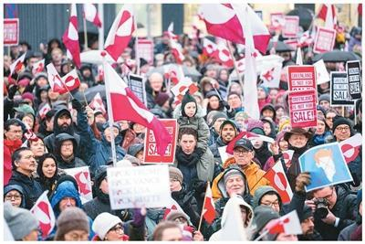 1月17日,在位于丹麦自治领地格陵兰岛首府努克,人们参加示威游行。当日,格陵兰岛努克举行示威游行,抗议美国企图“控制”或“购买”格陵兰岛。新华社/美联