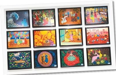 在阿瓦提县刀郎文化(农民画)非遗传承中心展出的刀郎农民画作品。本版图片除标注外,均为本报记者 孙 懿摄