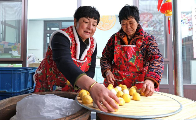 唐凤洁(左)和婆婆查素凤(葫芦岛日报社 田嘉 摄)三室一厅,独立厨房、卫生间,屋内暖意融融,家电一应俱全,这就是唐凤洁的新家。院子里,三口贴着红色福字的大缸格外惹眼,里面囤着酸菜、猪肉、大鹅……全是备好的年货,透着东北人家冬日里最地道的富足与喜庆。