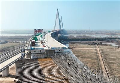 在安徽省马鞍山市当涂县,巢马城际铁路长江公铁大桥公路接线工程建设正酣。