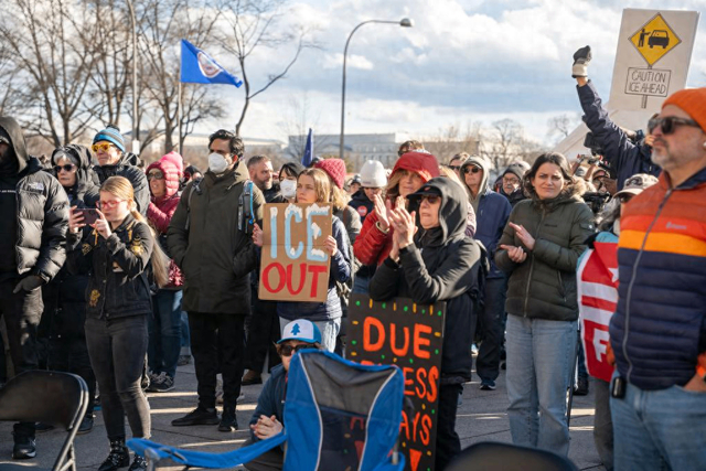 1月11日,在美国首都华盛顿,民众抗议移民与海关执法局暴力执法。新华社发(李源清摄)“这是街头屠杀!”“这是真正的虚伪!”当地时间1月26日,美国明尼苏达州明尼阿波利斯市民众在悼念美联邦执法行动遇害者现场,如此痛斥。今年以来,美联邦政府执法人员在针对移民的行动中相继开枪打死三人,引发大规模抗议。面对这样的现实,美国现届政府应该做出实际行动,让美国人民真正拥有免于枪支暴力恐惧的自由。