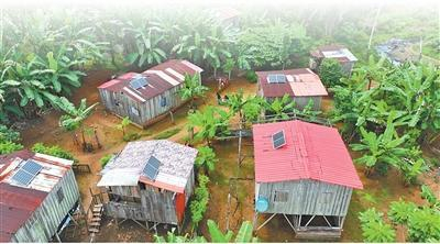 科洛尼亚村地处海边,被称为“海岸村”。村里的高脚木屋形制简单,底层大多堆放农具杂物,上层以木板为墙、铁皮为顶。屋顶新架起的太阳能板,在阳光下反射出耀眼的光,成为村里最鲜明的现代印记。
