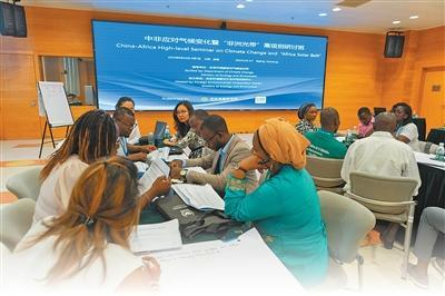 中国和非洲学员参加中非应对气候变化暨“非洲光带”高级别研讨班。