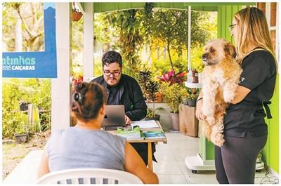 兽医对巴西皮亚萨盖拉岛居民的宠物进行问诊。