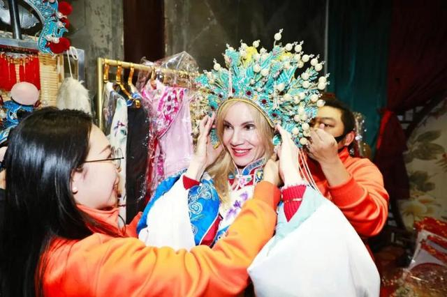 克罗地亚驻华使馆参赞娜塔莎·穆尼蒂奇来到中国只有4个月,第一次来到天津的她,被浓郁的文化氛围深深吸引。在广东会馆,她不仅惊叹于保存完好的建筑,还参与了戏服换装体验。