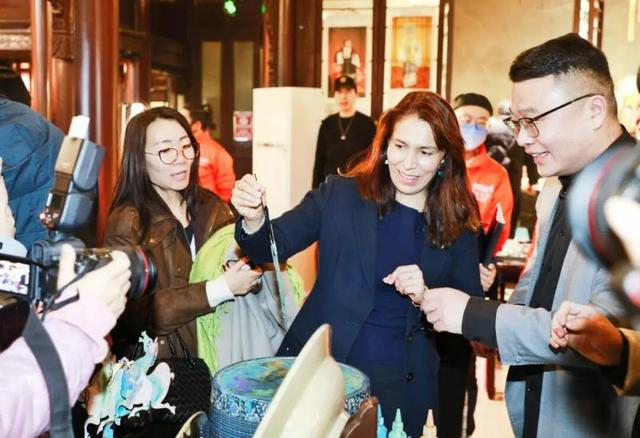 驻华使节一行到访天津古文化街,大红灯笼高高挂起,年味儿扑面而来。他们观摩泥人张泥塑制作技艺,欣赏含灯大鼓、天津快板等非遗曲艺表演,指尖轻抚百年非遗的匠心传承。