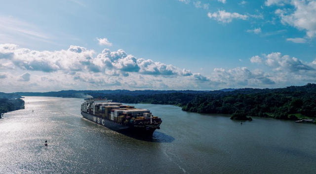 在巴拿马首都巴拿马城附近,一艘货轮在巴拿马运河上航行。图源:新华社三