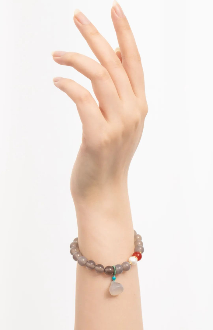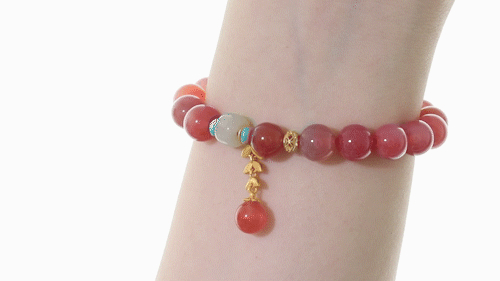 值得注意的是这款手串搭配了红色串珠、白色串珠各一颗,宛若山水画中的点睛之笔,焕发了整个画面的生机感。