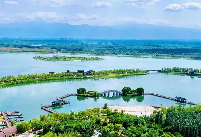 昆明池与秦岭的山水全景◎来源/西咸官微