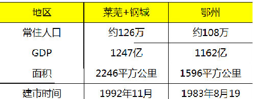 如下图,简单罗列了莱芜和鄂州的一些基本参数,发现单从这些点,两个区域旗鼓相当。