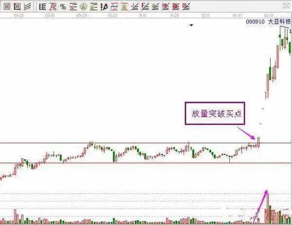 大盘或是个股在长时间下跌之后,会有一个横盘整理的状态,让K线形成一个箱体,当底部在箱体右侧成交量逐步放大,最终突破箱体顶部的时候就是大胆买进的时候。