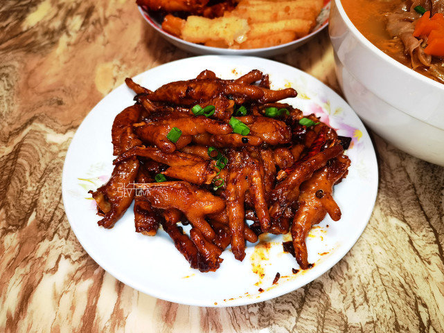 卤鸡爪在我们当地,大大小小的节日或者宴客餐桌上太常见了。而且现在人们越来越重视食品安全,所以大家也更愿意自己在家做卤味了。表妹卤的鸡爪单从色泽来说看着已经足够有食欲了,味道也很好,唯独一个小缺陷就是鸡爪不够软烂,不过已经很好了,值得表扬。