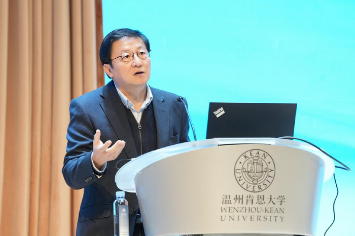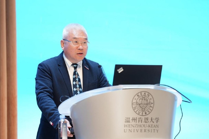 温州肯恩大学党委书记、理事长王北铰致辞。中国网 李康 摄