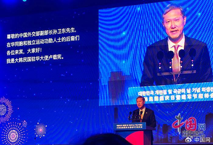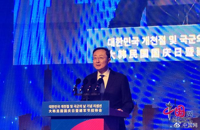 中国外交部副部长孙卫东在韩国国庆日招待会上致辞。(摄影 白璐)