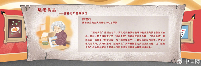 适老食品”是适合老年人消化功能及其他生理功能减退的预包装加工食品。目前,符合科学定义的“适老食品”市场供应几乎为零,“适老食品”需求巨大,且需要科学研发与规范化生产。建议以企业为主体,产学研政共同发力,支持和推动“适老食品”从专业概念向产业发展转化,让“适老食品”成为弥补老年人营养缺口和保证生活质量的重要组成部分。