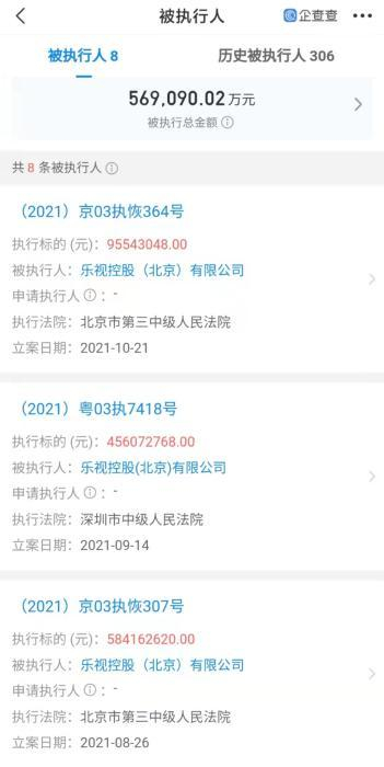 不过,乐视和贾跃亭依然巨额债务缠身。企查查App显示,乐视控股有被执行人记录8条,被执行总金额超过56亿元。贾跃亭在国内任职的14家企业中,有7家已经注销。